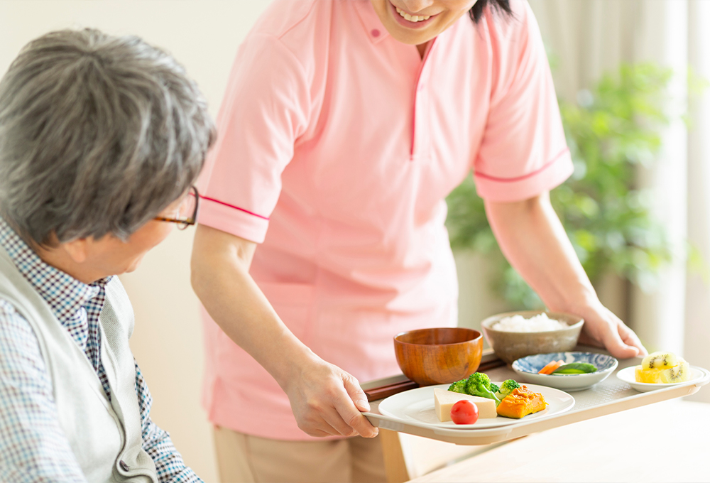 食事の配膳・下膳、入浴時の準備や衣類の整理など、介護スタッフの補助として支援します。