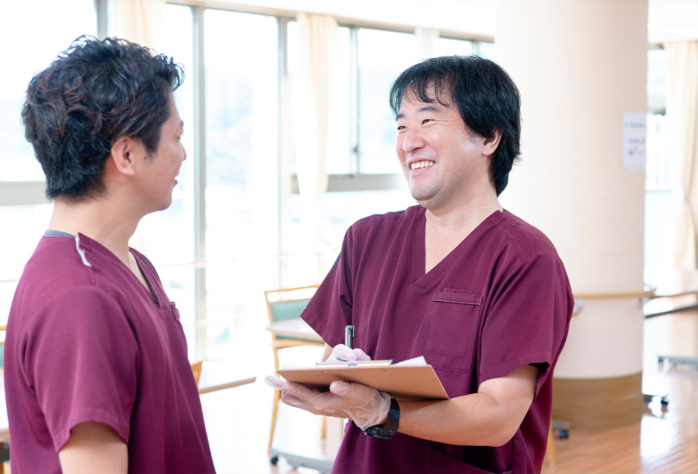 リハビリ職は、利用者様ができるだけ自立した生活を送れるよう、身体機能や日常動作の回復をサポートする専門職です。